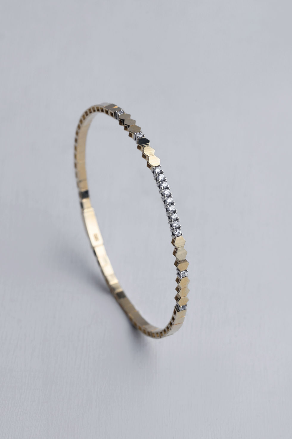 Merkezde yoğunlaşan parlak yapı, tasarıma yükselen bir vurgu kazandırır. Altın tonlu geometrik gövde ile birleşerek güçlü ve elit bir ifade oluşturur.